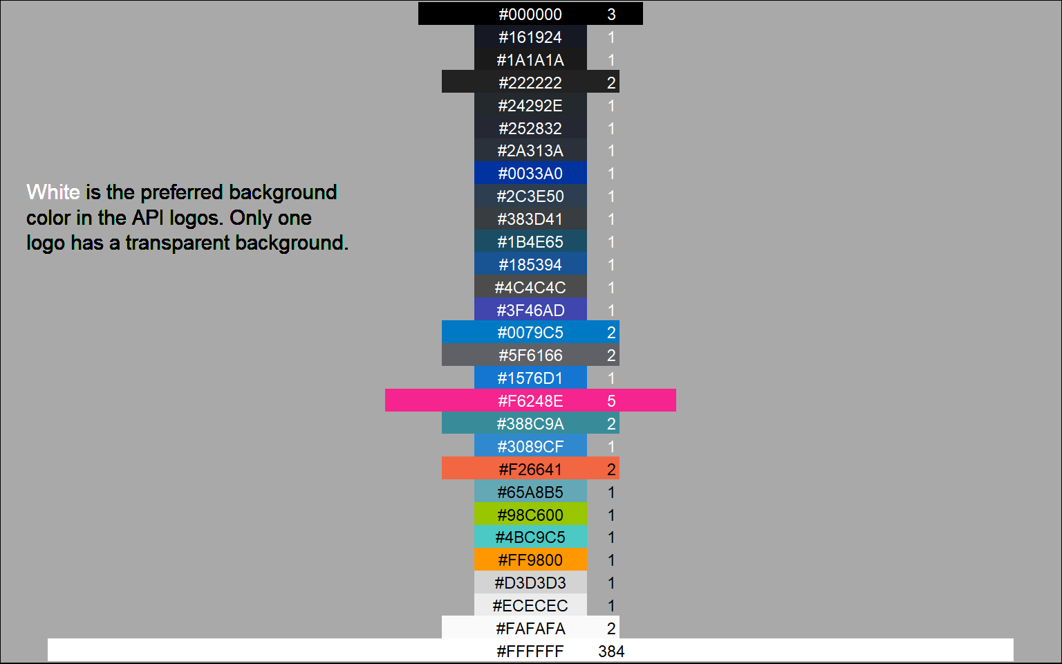 title <- "<span style='color:white;'>White</span> is the preferred background <br>color in the API logos. Only one <br>logo has a transparent background."
